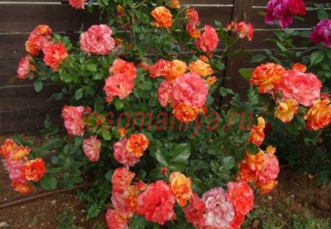 Эта роза с розовыми и оранжевыми мазками на желтом фоне посвящена известному импрессионисту. Цветение очень обильное, сорт достаточно устойчив к заболеваниям. Легкий аромат персиков, яблок и ананаса.