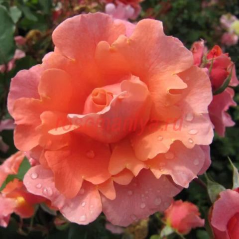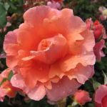 Плетистая роза необычной кораллово-розовой окраски с крупными и очень душистыми цветами аромата абрикоса и маракуйи, высокой ремонтантностью и устойчивостью к болезням.