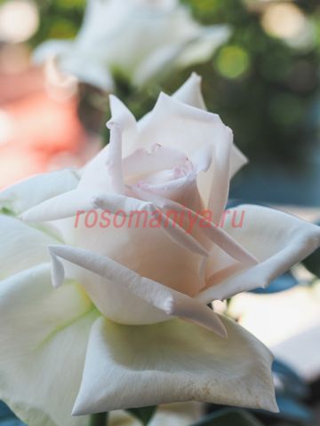 Роза Анггун-очаровательный сорт, его отличительной чертой являются интенсивный аромат мяты перечной и элегантные бокалы классической формы. Темно-зеленая листва, слегка бронзовая изначально, контрастирует с белым цветом цветов.