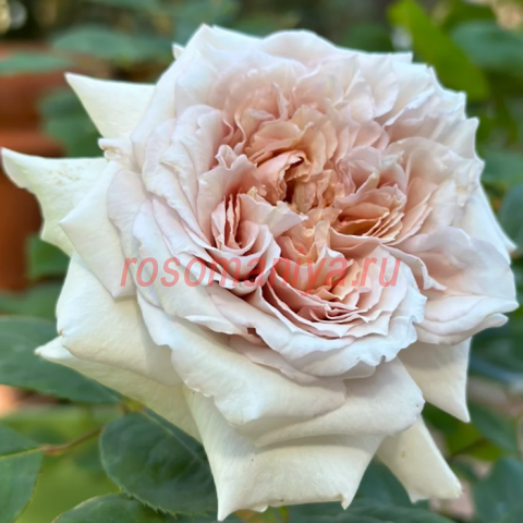 Еще одна роза из серии "Небеса". Сорт чайно-гибридной розы с крупными махровыми цветками и легким ароматом свежести. Цветки пышные, с множеством мелких оборок - оригинально уложенных в центре лепестков. Роза красивого кофейно- розового цвета с более насыщенным бежевым тоном в центре цветка. Куст компактный, с матовой зеленой листвой. Сорт идеален для выращивания в горшке.