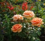 Цветки сенсационного медно-коричнево-оранжевого тона, сверкают как пламя, устойчивы к дождю, хорошо стоят в срезке. Кусты крепкие, листья невосприимчивы к мучнистой росе, устойчивы к черной пятнистости.