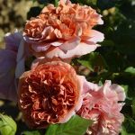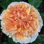 Роза с очень крупными густомахровыми цветками свободной квартировки, лепестки обладают удивительным медно-абрикосовым цветом, а отцветая, становятся розовыми и запах, который и так выразителен, превращается в мощный фруктовый аромат. По мере отцветания желательно обрезать увядшие цветы, чтобы обеспечить улучшенное повторное цветение. Куст гармоничный, листва ярко- зеленая, зубчатая.