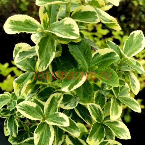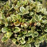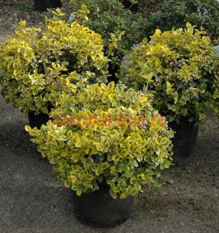 Хорошо разветвлённый компактный вечнозелёный кустарник нерегулярной формы высотой 60-90 см, диаметром 90-120 см. Засухоустойчив. Листья овальные, блестящие, зелёные с жёлтой каймой, особенно яркие в полутенистом месте. Почва хорошо дренированная.
