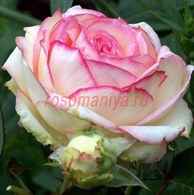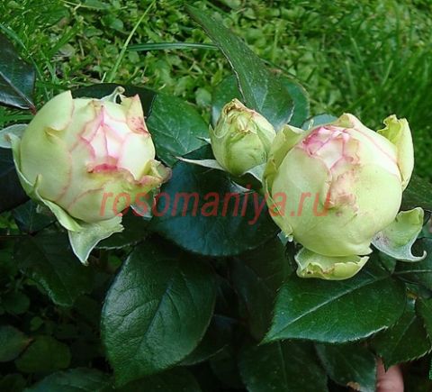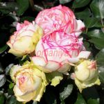 Сорт для переднего плана. Его аккуратные бело-розовые шарики выглядят так, будто их сложили в ожерелье и развесили на зелёных нитях. Он компактен, но всегда заметен — словно магия, скрытая в мелочах. В его облике есть наивность, игра и тонкая изысканность одновременно.