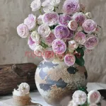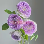 Сиреневый, кремовый оттенок, светло-зелёные внешние лепестки. От маленького до среднего размера, цветок очень пышный, в небольших соцветиях, в форме розетки. Цветёт в течение всего сезона.