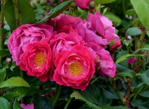 Богатый и стойкий цвет - пламенно-пурпурный, который, к сожалению, искажается на фото. Цветки распускаются постепенно и долго сохраняют прекрасную чашевидную форму, не теряя глубины краски, лишь в завершающей фазе цветения лепестки слегка выгорают. Компактные кусты с куполообразной кроной и блестящими листьями хороши даже без цветов.