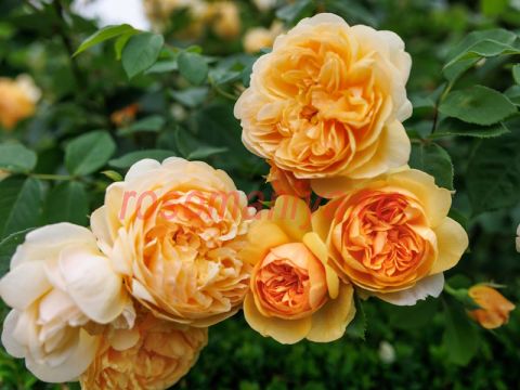 Длинные, заострённые, яйцевидные бутоны. Шарик желтого цвета раскрывается постепенно в слегка квадратированную глубокую чашу. Дальше роза распускается, золотисто-желтый цвет уходит, и тон сменяется на апельсин со сливками. Цветок довольно крупный, пышный, очень красивой формы. Цветет невероятно обильно с быстрым повтором. Лист кожистый, средне-зеленый, сорт устойчив к заболеваниям. Прекрасно переносит влажность.