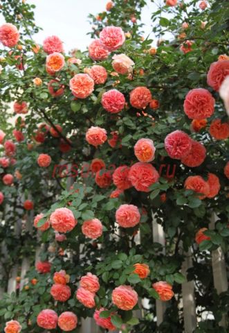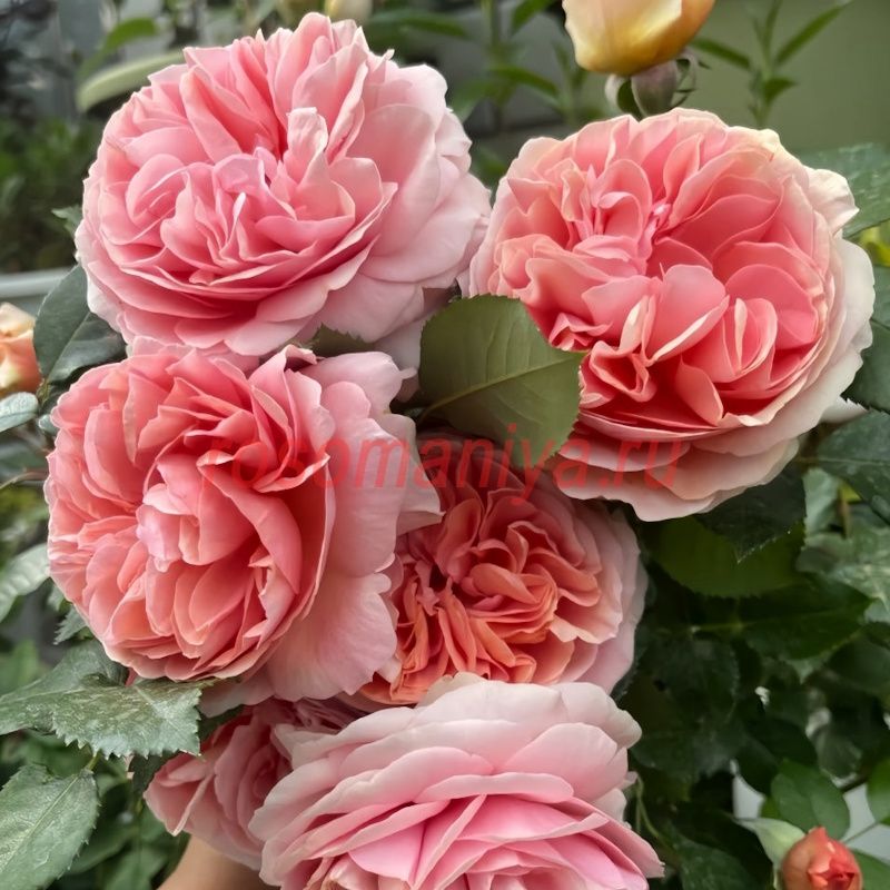Цветки очень душистые, густомахровые, в старинном стиле, медленно раскрываются, долго сохраняют форму. Очень обильное повторное цветение. Лист темно-зеленый, средний, глянцевый, кожистый, удлиненный.