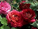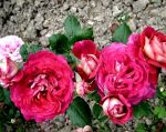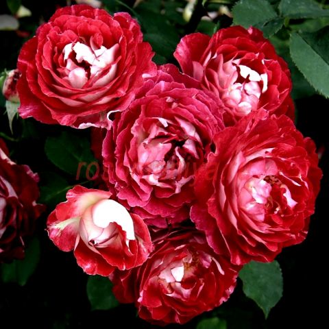 Цветок чашевидной формы, рубиново-красный, с золотисто-желтой оборотной стороной лепестков с резным краем.  Аромат с выраженными нотками лесной земляники. Здоровый, энергичного роста куст.