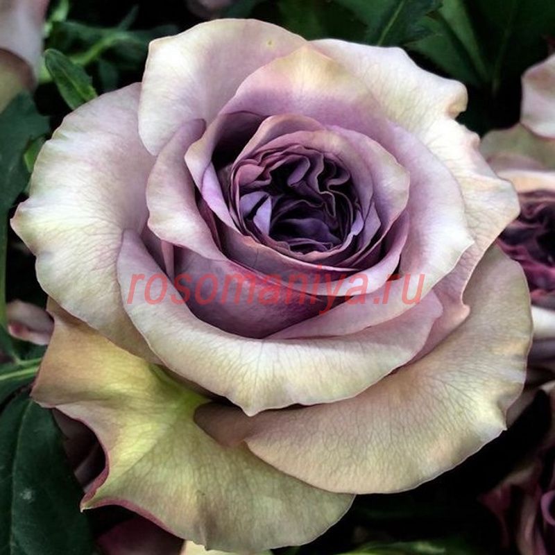 Потрясающая роза темно-лилового цвета в винтажном стиле. Цветки густомахровые, с волнистыми кружевными краями лепестков.
