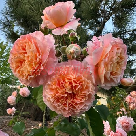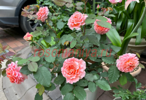 Гармоничная смесь оранжевых, абрикосовых, розовых оттенков. Густомахровые, крупные цветы с сильным фруктовым ароматом. Мощный куст, обильное цветение, превосходная устойчивость к болезням.