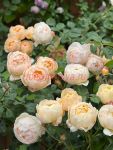 Цветки Jude the Obscure состоят из множества крупных, закрученных к центру лепестков, что придает им шаровидную форму. Окраска великолепная – смесь нежно-абрикосового и сливочного в центре, с бледными, кремово-белыми внешними лепестками. Появляются по одному и в небольших кистях. Куст ветвистый, колючий, с гибкими поникающими побегами и малиновым молодым приростом. Листва довольно устойчива к болезням. Обильно цветет повторно. В южных регионах можно выращивать в плетистой форме.