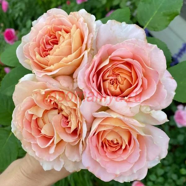 Это новая грандифлора — настоящая роза в английском стиле с роскошными густомахровыми цветами, она сохраняет до конца цветения свой цвет и источает восхитительный фруктовый аромат, приглашая в сад бабочек, пчел и других опылителей. Крупные цветы собраны в соцветия. Своим цветом роза напоминает мороженое, фруктовый напиток и солнечный пляж — все то, чем может быть наполнен день веселья на солнце…