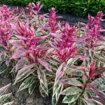 Листья: пёстрые, зелёные с белой каймой, молодые — розовые.