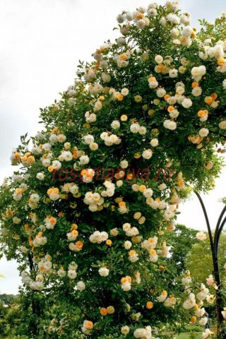Форма куста: требует опоры, горизонтальной подвязки для обильного цветения; побеги с редкими шипами