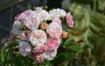 Нежные розовые цветки, старея, становятся кремовыми, почти белыми. Поэтому на кусте одновременно можно увидеть розовые, кремовые, белые цветки и маленькие светло-желтые бутоны.