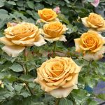 Необыкновенная, роскошная роза, - мгновенно завоевала всеобщее внимание благодаря пышному раскрытию бутона и лепесткам необычного горчичного оттенка. Цветки большие, очень плотно набитые, лепестки аккуратно уложены. Цветет в течение всего сезона очень обильно и непрерывно. Раскрывается долго, и так же бесконечно долго цветы держатся на кусте. Листва темная, куст аккуратный.