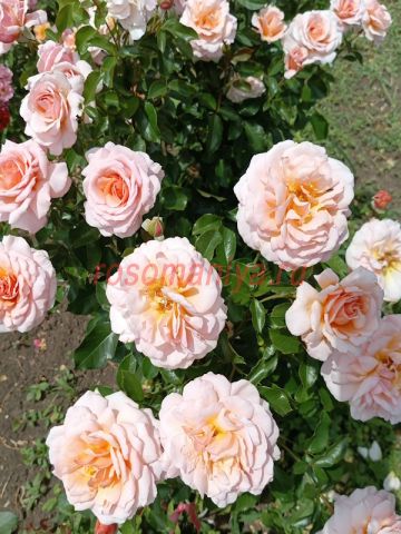 Очень красивая флорибунда с обильным цветением на протяжении всего сезона. Ароматные и махровые цветы уникально сочетают в себе смесь розовых и абрикосовых оттенков. Куст компактный и пушистый. Молодая листва медно-красного цвета, зрелая - блестящая, темно-зеленая. Отличная устойчивость к болезням. Аромат превосходный, сладкий.