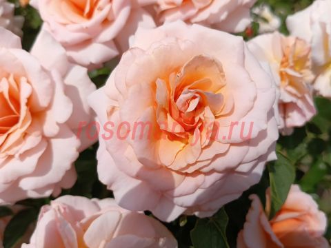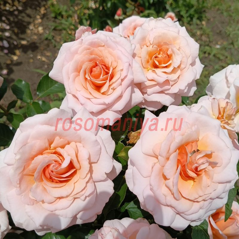 Очень красивая флорибунда с обильным цветением на протяжении всего сезона. Ароматные и махровые цветы уникально сочетают в себе смесь розовых и абрикосовых оттенков. Куст компактный и пушистый. Молодая листва медно-красного цвета, зрелая - блестящая, темно-зеленая. Отличная устойчивость к болезням. Аромат превосходный, сладкий.