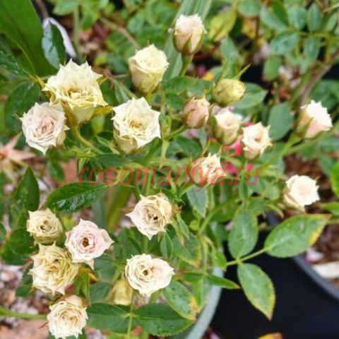 Листья вытянуто-заостренные, темно-зеленые, кожистые, матовые. Кусты ровные, компактные. Цветение обильное, повторное до морозов. Букеты долго стоят в срезке, великолепно подходят для цветочных аранжировок.