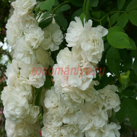 Розу можно вести как в плетистой, так и в кустовой форме, - она прекрасно переносит обрезку и формирование. Без обрезки высота куста может достигать 4 метров. Побеги гибкие. Цветение однократное, на протяжении месяца. Цветков несметное количество.