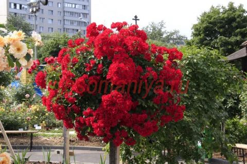 Компактный стройный куст, благодаря обильному цветению в течение всего сезона достигается эффект цветочного ковра. Цветки пурпурно-красные, густомахровые. Листва ярко-зеленая, блестящая. Сорт исключительной выносливости.