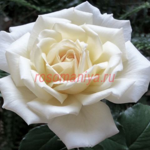 Бутоны раскрываются в крупные, белые, цвета слоновой кости, цветы. Объёмная наполненность лепестками, магический цвет и сладкий умопомрачительный аромат этой розы очаровывают. Роза пригодна для срезки, для клумб и для посадки небольшими группами.