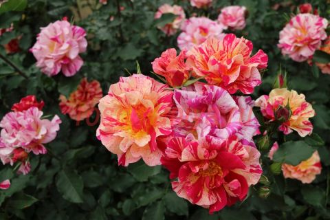 Цветки привлекают кроваво- красными оттенками, свободной, художественной формой, а сорт в целом восхищает здоровьем и способностью цвести практически без перерыва. Аромат легкий, но в нем слышны нотки малины и листьев черной смородины. Хорошая энергия роста, прекрасное качество листвы.