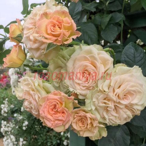 Сорт Emerald Isle (Изумрудный Остров) - повторноцветущий клаймбер, хорошо переносит и дождь, и жару, и холод. Цветки бледно-абрикосовые с более темным оттенком в центре, с салатовыми кроющими волнистыми лепестками. Куст очень выносливый, сильнорослый.