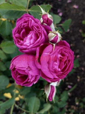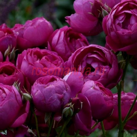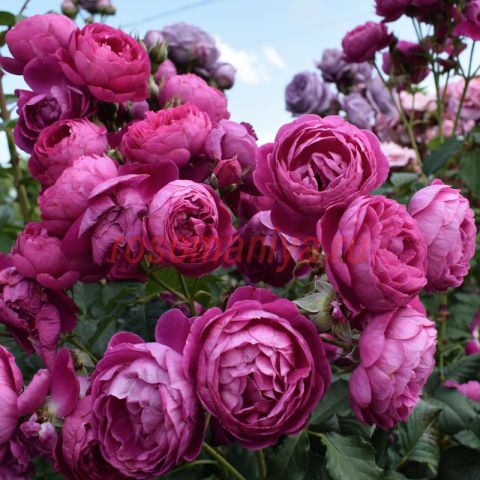 Роза с очаровательными шаровидными бутонами и ароматными, интенсивно-фиолетового цвета, с оттенками розовой фуксии цветками. Аромат интенсивный, насыщенный, - мирры и лилии. Куст с темно-зеленой листвой, устойчивой к заболеваниям.