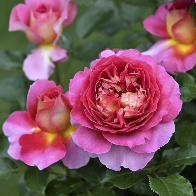 Цветение начинается с ярких красок, - красные лепестки с розовыми краями созревают до темно-розовых и бледно-желтых, с золотистой нижней стороной и уникальными гофрированными, накладывающимися друг на друга волнами.