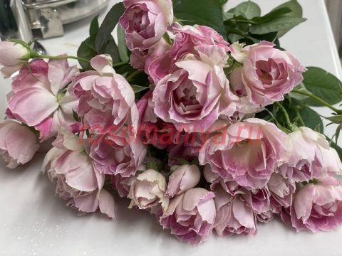 По краю лепестка проходит отчетливая белая «подводка». Цвет очень зависит от окружающей среды, становясь более насыщенным и приобретая более выраженный винтажный розовый оттенок при большой разнице температур днём и ночью.