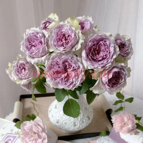 Ароматные цветки среднего размера - лавандовые, сиреневые, со светло-зелеными наружными лепестками. С возрастом цветки бледнеют, становятся пепельно-лавандовыми и принимают винтажное очарование.