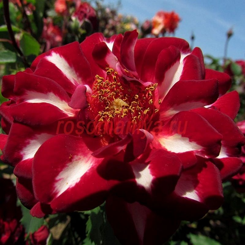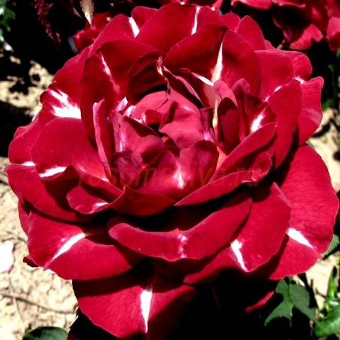 Одна из самых необычных роз, выведенных за последние годы. Лайтнинг Страйк - роза с рубиново-красными цветами с одиночными белыми вспышками молнии на каждом лепестке. Цветки махровые, с оборчатыми лепестками, собраны в небольшие соцветия. Аромат мягкий. Цветение волнами в течение всего сезона. Листва матовая, устойчивая к заболеваниям.