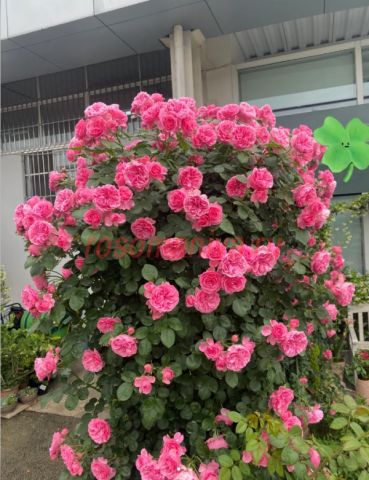 Насыщенно-розовые густо-махровые цветки, в центре квартированные, лиcтва обильная, кожистая. Куст прямостоячий, кустистый, очень компактный. Цветет обильно и продолжительно, не боится дождей, не выгорает.
