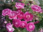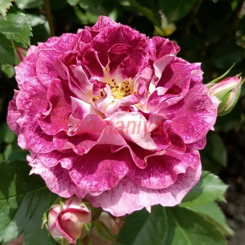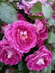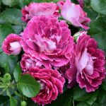 Очаровательная новая флорибунда с интересной окраской цветков. Лепестки серебристо-белые, покрытые фиолетово-лиловыми штрихами и пятнами в почти сюрреалистической комбинации. Цветки среднего размера, махровые, с красиво расположенными лепестками, очаровательными, взъерошенными на вид, в больших соцветиях. Цветение обильное. Кусты аккуратные, густые, плотно покрыты листвой.