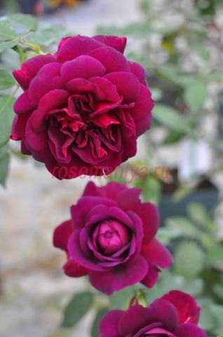 Глубокий черно-красный цвет с сильным пурпурным оттенком, в конце цветения меняется на потрясающий королевский фиолетовый. Побеги гибкие, заметно раскидистые, с небольшим количеством шипов.