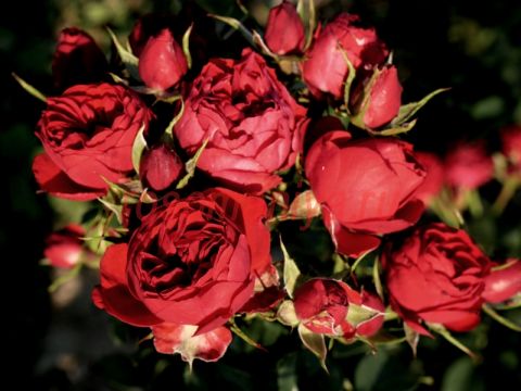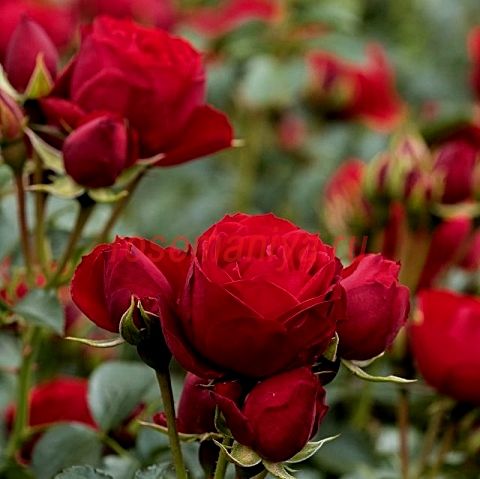 Цветы ярко-красного цвета, махровые, в соцветиях, с легким ароматом. Куст компактный. Листва с хорошей устойчивостью к черной пятнистости и высоким сопротивлением к ложной мучнистой росе.