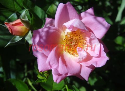 Бутоны насыщенно-персикового цвета, раскрывшиеся цветки бледно-персиковые, выгорают до розовых. Среди морозостойких роз это уникальный цвет, т.к. редко встречается.