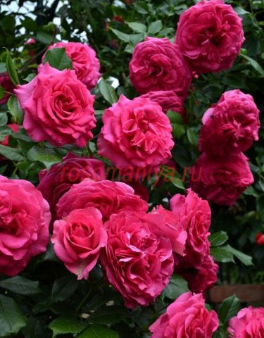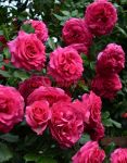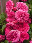 Очень яркая плетистая роза. Бутоны шаровидные, позднее распускаются до плоских розеток, серединку не показывают. Окраска очень устойчивая, не выгорает даже на полном солнце. Побеги сильные, прямостоячие, с ярко-зеленой, блестящей листвой изумительного цвета. Не боится ни дождя, ни высоких температур.
