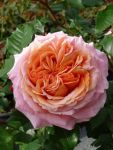 Цветки оранжевые с красноватыми тонами на внешних лепестках, чашевидные, часто квартированные. Побеги сильные, жесткие, прямостоячие, умеренно колючие. Листва блестящая, молодая - темно-красная. Аромат приятный, сладкий и фруктовый.