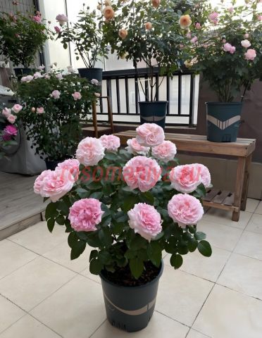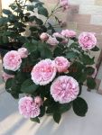 Сорт отличается классической формой английской розы и удивительной окраской, нежно-розовой со светло-зеленым отливом по краю наружных лепестков.