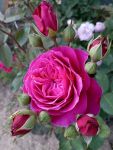 Цветки великолепного темно-пурпурного цвета с более светлым реверсом. Несмотря на темный цвет, кажутся светящимися. В жару они быстро выгорают до лиловых, как некоторые из галльских роз. Форма у цветков тоже напоминает старинные розы. Листва темная, блестящая, куст невысокий, компактный.