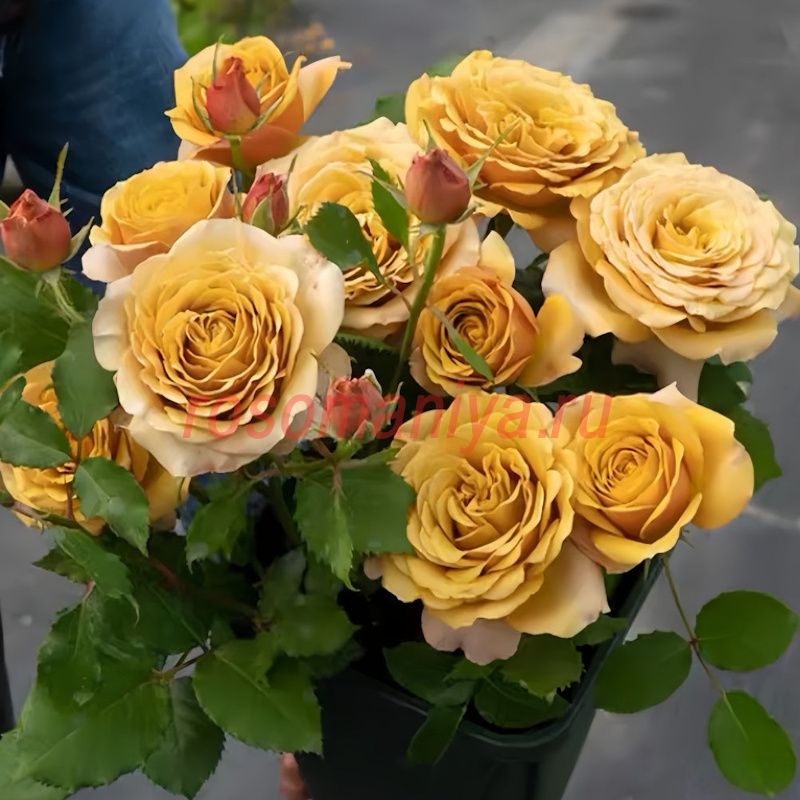 Цвет розы Pine Dream - изюминка цветка. Они горчичные, с переходами в кофейно-коричневые и медные тона, лепестки с восковым налетом.