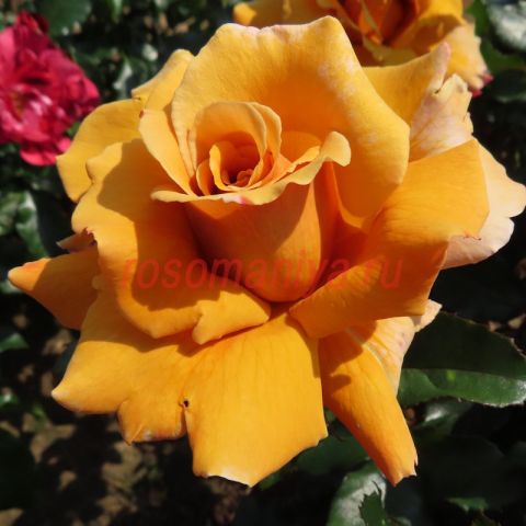 Роза «Идеальный джентльмен» привлекает внимание своими фантастическими золотисто-желтыми и оранжевыми цветками с легким красным оттенком.