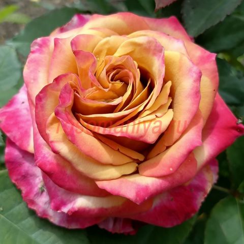 Шикарная бокаловидная роза коричневого цвета с розовым налетом на краях лепестков. Аромат весьма ощутимый, парфюмированный. Листва темно-зеленая, глянцевая.