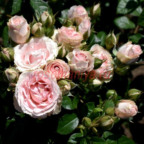 Цветы густомахровые, устойчивые к дождю, постоянно в бутонах. Аромат умеренный. Листва абсолютно устойчива к мучнистой росе и чёрной пятнистости.