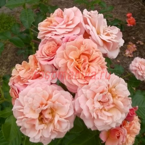 Необыкновенной красоты роза с цветками лососевого цвета.