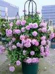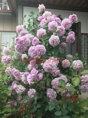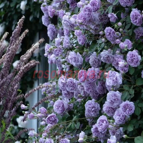 У Рейни Блу бледно-фиолетовые цветки с двойным рядом лепестков и лёгким ароматом. Она непрерывно цветёт в течение сезона. Эффектная и элегантная.