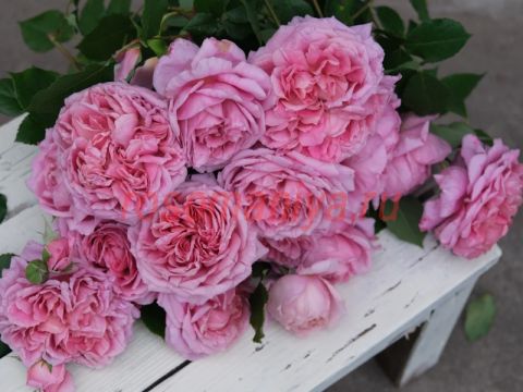 Розовые с коричневыми и розово-сиреневыми оттенками, с более темным реверсом, чашевидной формы, густомахровые цветы обладают мягким ароматом, эффектно смотрятся на фоне блестящей темной листвы.